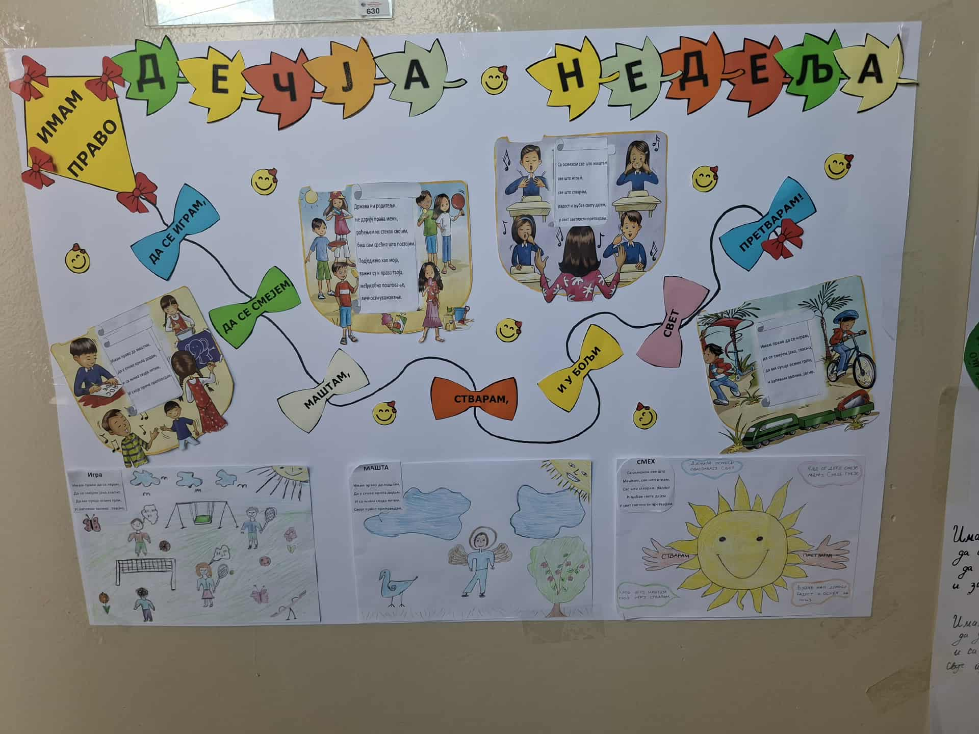 Дечја недеља се, традиционално, одржава сваке године у првој недељи октобра, па је тако и ове године била обележена у нашој школи од 6. до 12. октобра под слоганом „Имам право да се играм, да се смејем, маштам, стварам и у бољи свет претварам”.