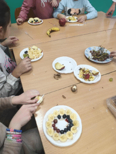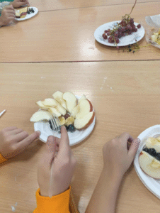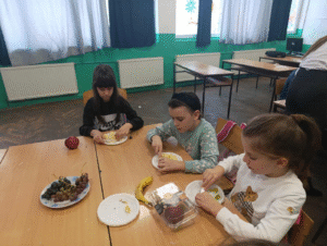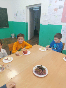 Последњег дана ученици нижих разреда су припремали воћне салате, експериментишући са различитим састојцима и укусима.Том приликом су разговарали о предностима здраве хране и о томе како различите намирнице утичу на њихово здравље.