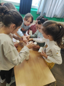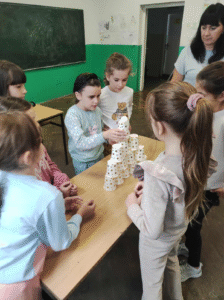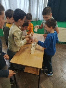 За крај су одиграли такмичарку игру са чашама и лоптицама.