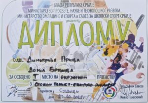 Основна школа “Димитрије Прица” из Доње Брњице остварила је изванредан успех, ученик 7. разреда Ђорђе Миладиновић освојио је 1.место у појединачној конкуренцији, док су у екипној конкуренцији наши ученици такође остварили прво место. Екипу наше школе чинили су:
