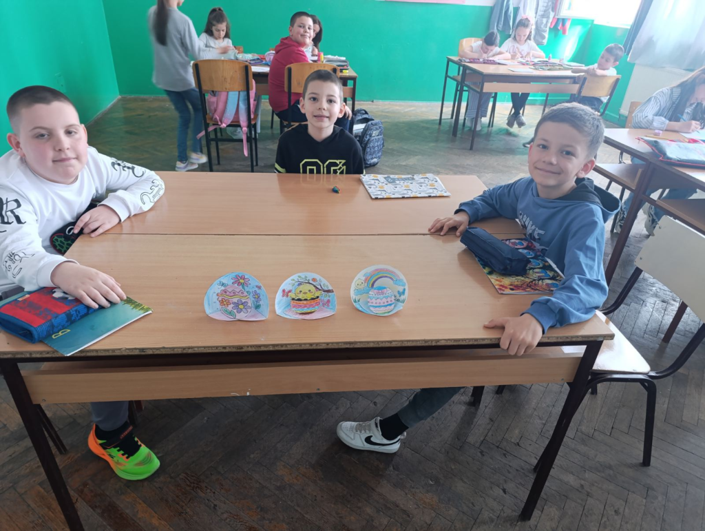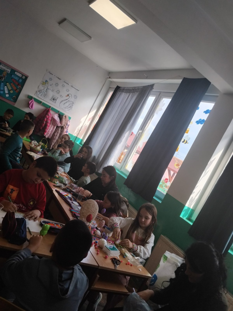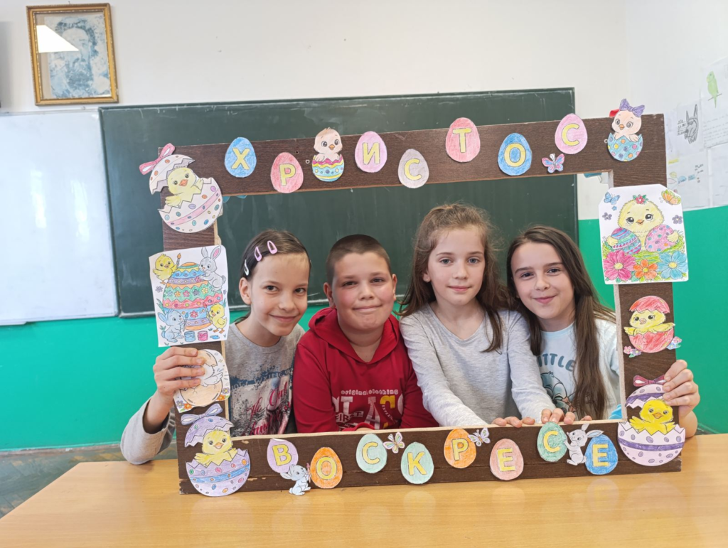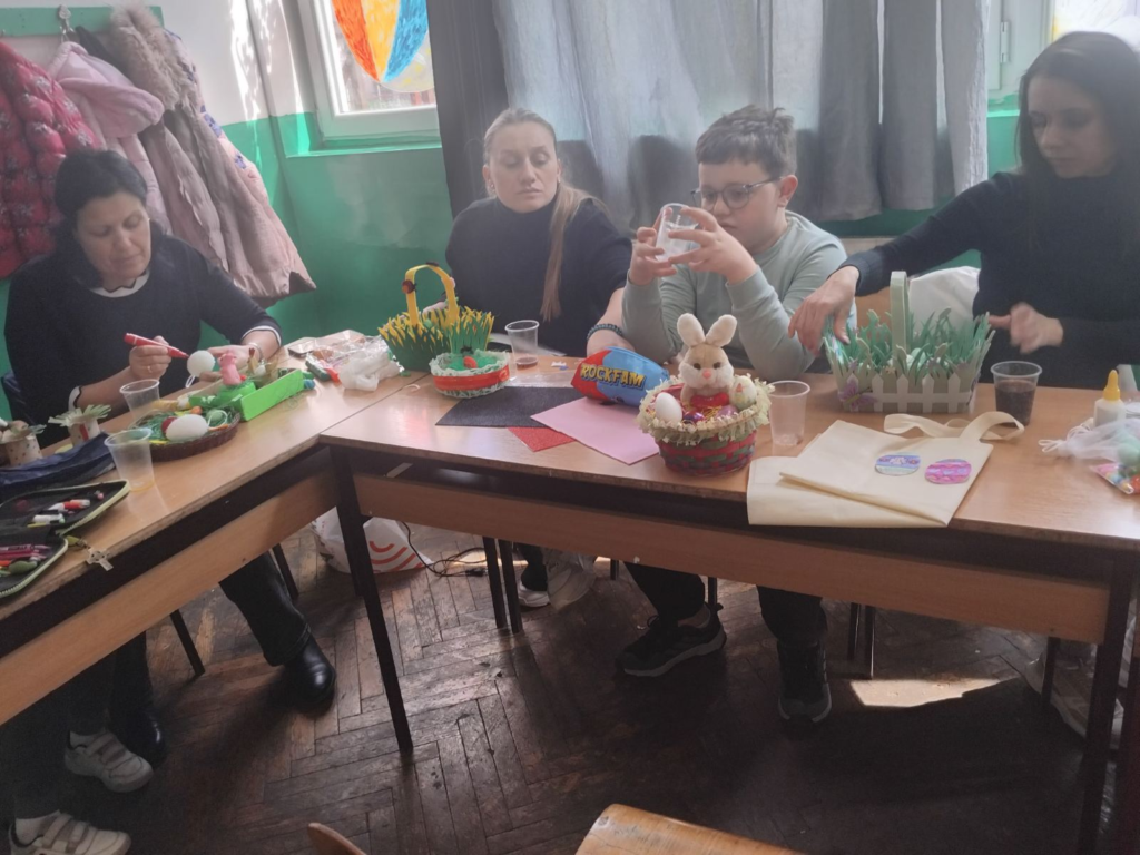 Ученици су на креативној радионици правили ускршња јаја и пилиће на сталцима, као и дрвени оквир са ускршњим мотивима.Када су ученици завршили своје ускршње рукотворине уследило је сликање се ученицима.