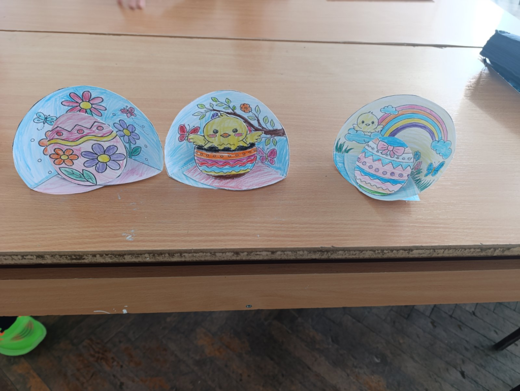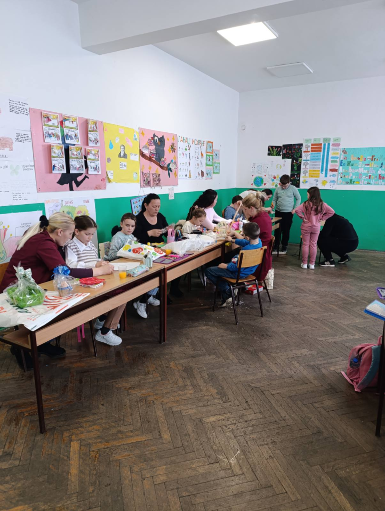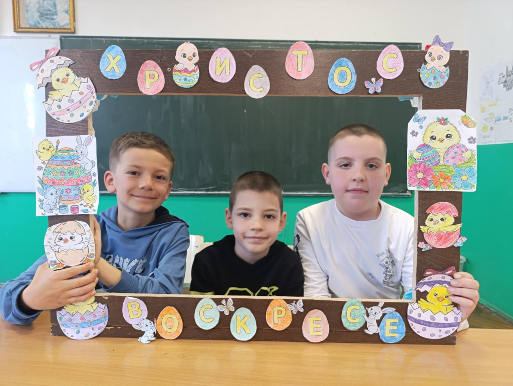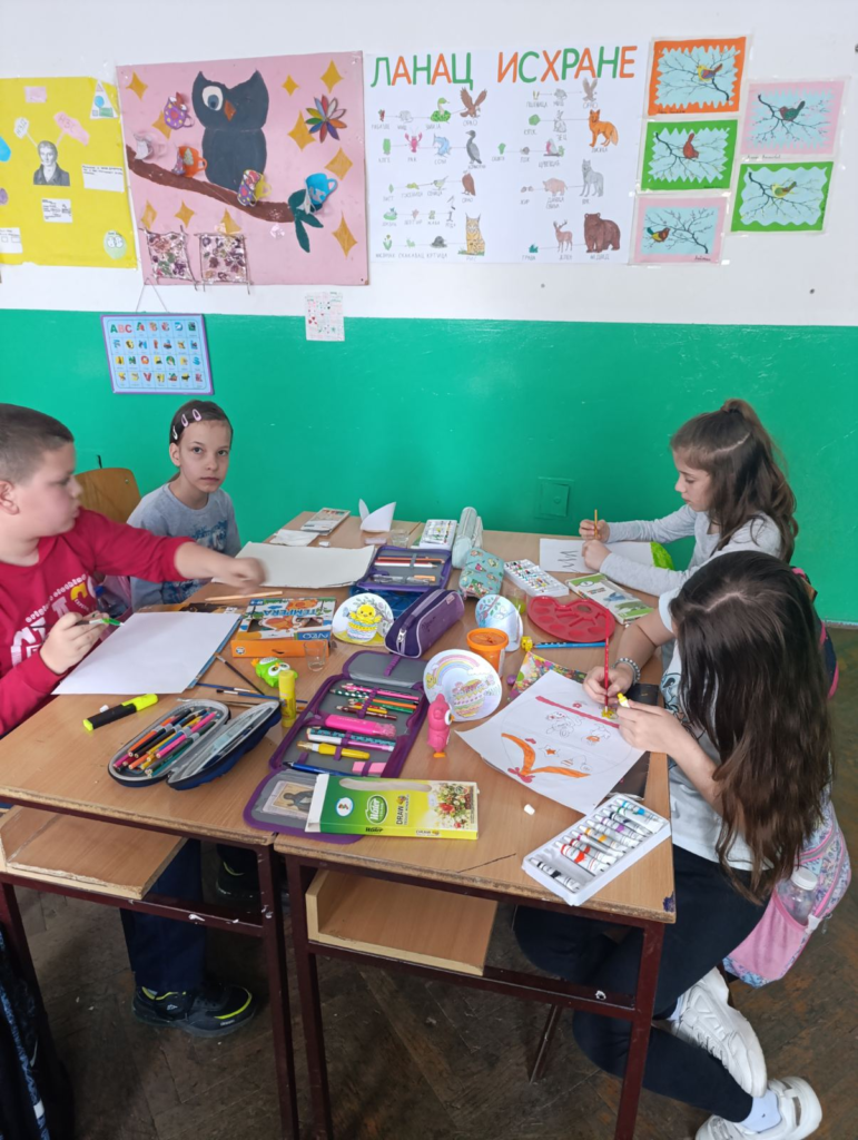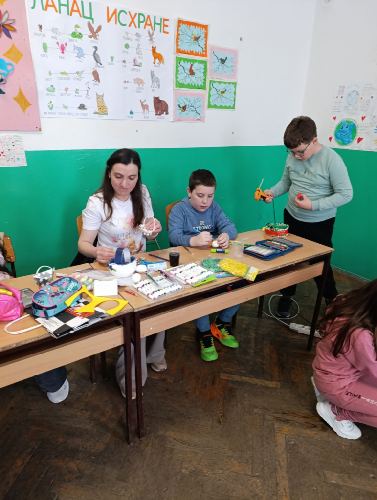 Ученици су на креативној радионици правили ускршња јаја и пилиће на сталцима, као и дрвени оквир са ускршњим мотивима.Када су ученици завршили своје ускршње рукотворине уследило је сликање се ученицима.